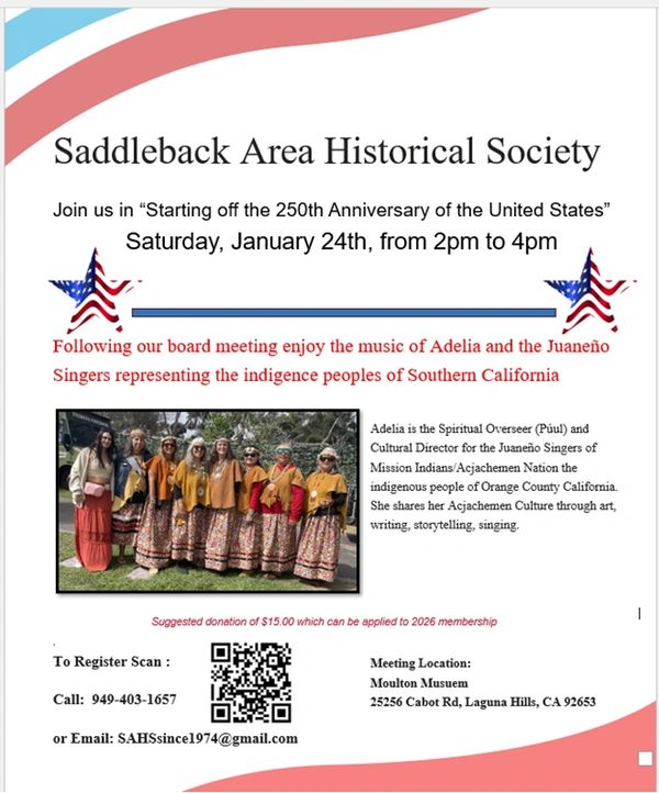 The SAHS has hosted events such as the Pioneer Roundup, which highlights the contributions of Saddleback Valley settlers. The SAHS also has a partnership with the Moulton Museum, which opened in September 2022 and features exhibits about Saddleback pioneers.